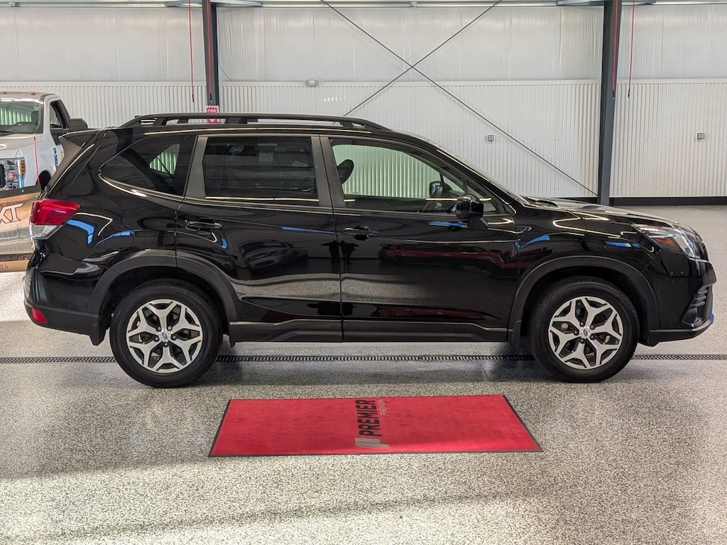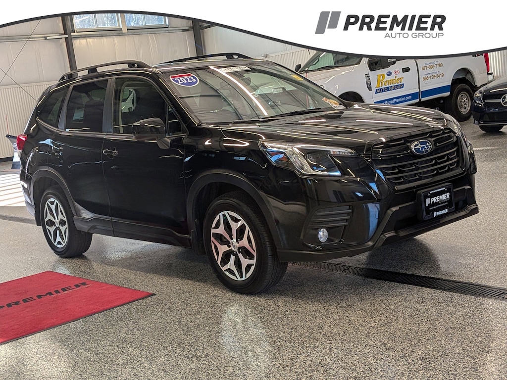 1 OWNER ACCIDENT FREE VEHICLE HISTORY, MAINTAINED BY PREMIER SUBARU'S FACTORY CERTIFIED TECHNICIANS, YOUR CHOICE! EITHER SUBARU CERTIFIED OR A LIFETIME POWERTRAIN WARRANTY!, * EYESIGHT COLLISION AVOIDANCE SYSTEM, * SUNROOF / MOONROOF, APPLE CARPLAY AND ANDROID AUTO, LOW MILES, Forester Premium, 2.5L 4-Cylinder DOHC 16V, Lineartronic CVT, Crystal Black Silica, 3.70 Axle Ratio, 4-Wheel Disc Brakes, 6 Speakers, ABS brakes, Air Conditioning, All-Weather Floor Liners, Alloy wheels, AM/FM radio: SiriusXM, Anti-whiplash front head restraints, Auto High-beam Headlights, Automatic temperature control, Blind Spot Detection w/RCTA & Power Rear Gate, Blind-Spot Detection (BSD), Brake assist, Bumpers: body-color, CD player, Door Edge Guards - Crystal Black Silica, Driver door bin, Driver vanity mirror, Driver's Seatback Divided Pocket, Dual front impact airbags, Dual front side impact airbags, Dual USB Charge Ports, Electronic Stability Control, Emergency communication system: STARLINK Safety and Security (Subscription Required), Exterior Parking Camera Rear, EyeSight System, Four wheel independent suspension, Front anti-roll bar, Front Bucket Seats, Front Center Armrest, Front fog lights, Front reading lights, Fully automatic headlights, Heated door mirrors, Heated Front Bucket Seats, Heated front seats, Illuminated entry, Knee airbag, Low tire pressure warning, Multi-Function High Grade Display, Occupant sensing airbag, Outside temperature display, Overhead airbag, Overhead console, Panic alarm, Passenger door bin, Passenger vanity mirror, Power door mirrors, Power driver seat, Power moonroof: Panoramic, Power Rear Gate, Power steering, Power windows, Premium Cloth Upholstery, Radio data system, Radio: Subaru Starlink 6.5" Multimedia Plus System, Rear anti-roll bar, Rear seat center armrest, Rear window defroster, Rear window wiper, Remote keyless entry, Roof rack: rails only, Security system, Speed control, Speed-sensing steering, Splash Guards, Split folding rear seat, Spoiler, STARLINK/Apple CarPlay/Android Auto, Steering wheel mounted audio controls, Tachometer, Telescoping steering wheel, Tilt steering wheel, Traction control, Trip computer, Variably intermittent wipers, Wheel Locks - Alloy, Wheels: 17" x 7.0 J Black Machine Finish Alloy. Certified. Priced below KBB Fair Purchase Price!