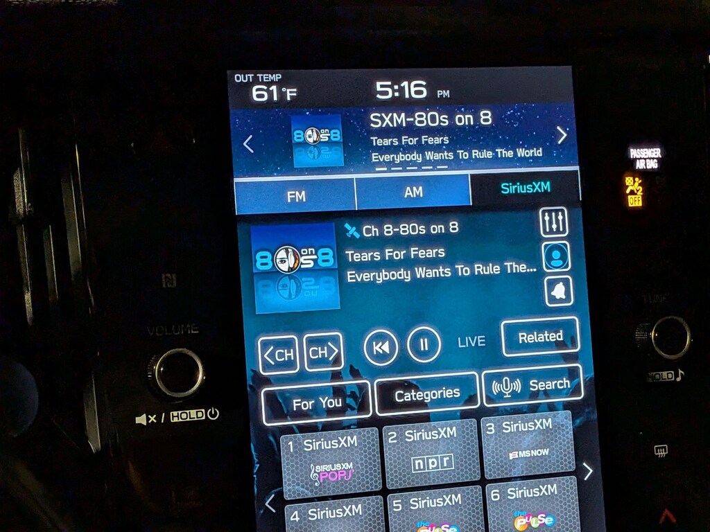 - Satellite radio trial duration with new vehicle purchase (months): 4