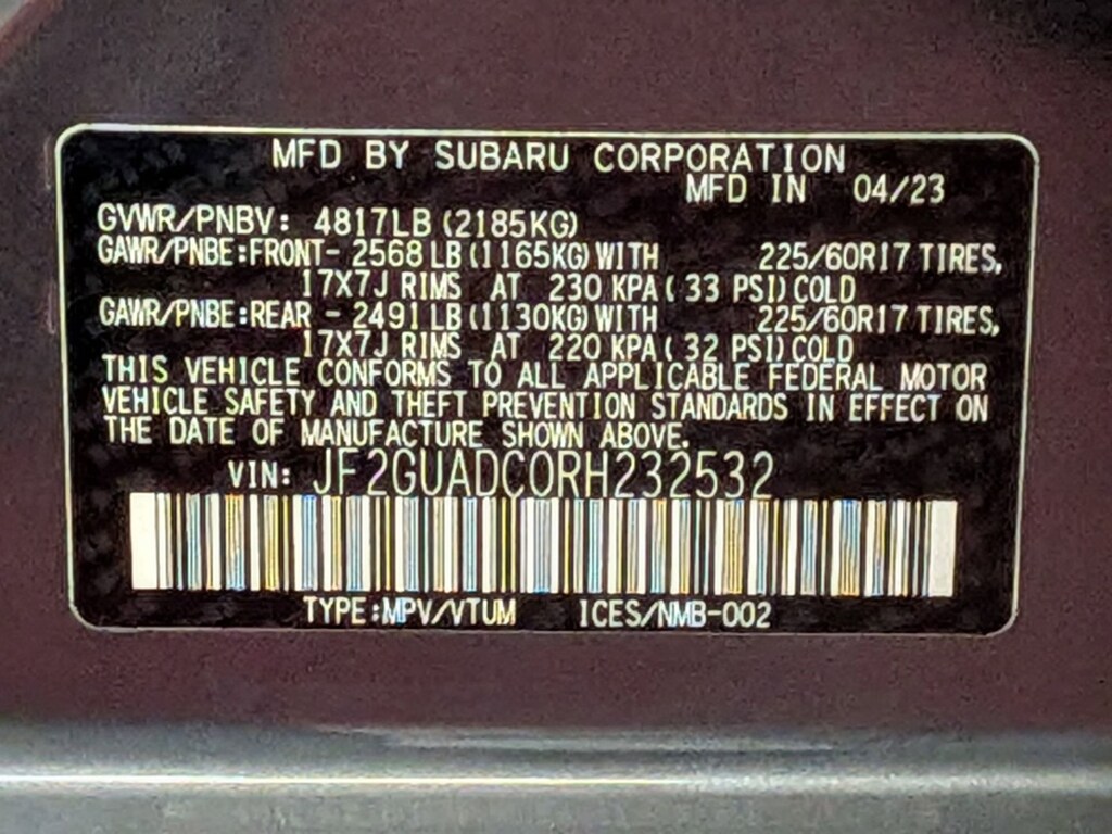 All vehicle specifications, prices and equipment are subject to change without notice. See above for information on purchase financing and lease program expiration dates. Prices and payments (including the amount down payment) do not include applicable, tax, title, license, dealer conveyance fee, documentation fees, registration fees, $175 Supply Chain Hardship fee as assessed to the retailer by Subaru of America, emissions testing charges, or other fees required by law or lending organizations. The estimated payments may not include upfront finance charges that must be paid to be eligible for the purchase financing program used to estimate the APR and payments. Listed Annual Percentage Rates are provided for the selected purchase financing or lease programs available on the current date. Program expiration dates reflect currently announced program end dates, but these programs are subject to change at any time.
