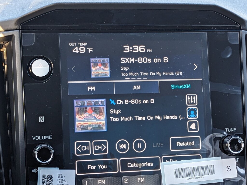 - AM/FM radio: SiriusXM