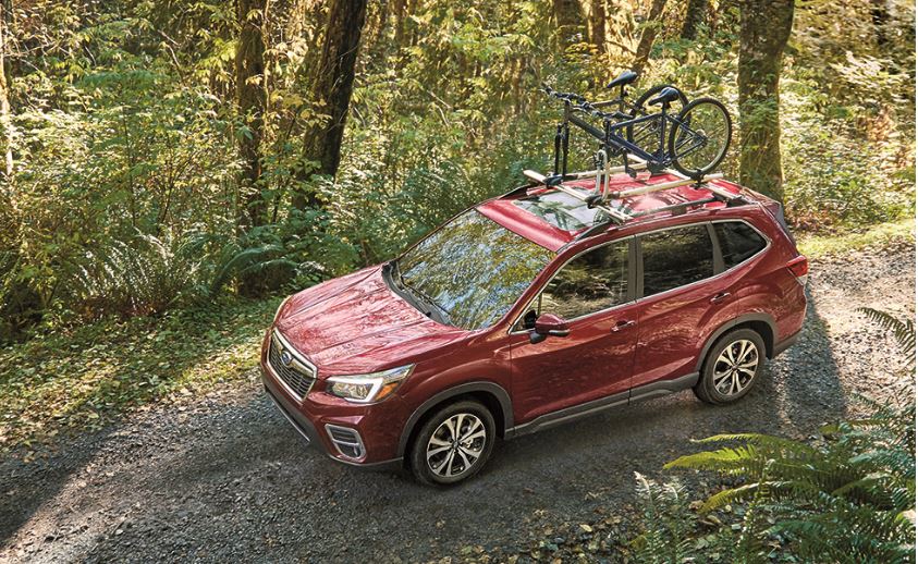 The 2019 Subaru Forester can tow up to 1,500 pounds. That's not quite as much at the Subaru Outback at 2,700 pounds, but still respectable for the compact SUV class. Forester also has Trailer Stability Assist which can apply the brakes to necessary wheels to maximize control of your vehicle while towing.