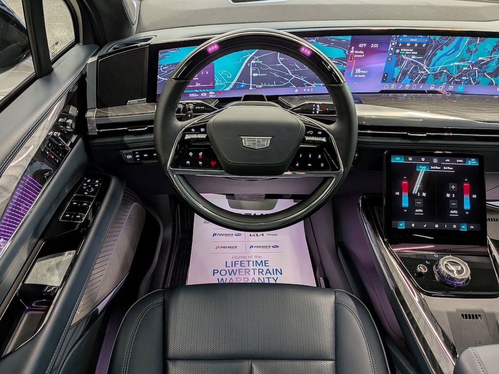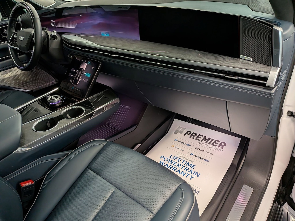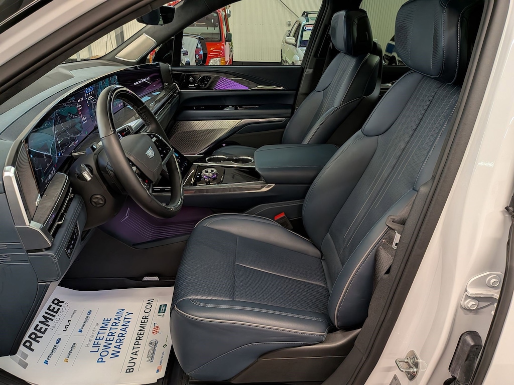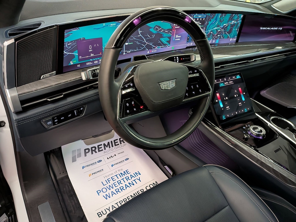 Finished with an elegant Black 2-Tone Roof and riding on 24" Diamond-Cut Alloy Wheels, this Escalade IQ commands attention from every angle. Inside, the cabin is a masterclass in comfort and technology, featuring Super Cruise hands-free driving, 4-Wheel Steering, Night Vision, and Cadillacs breathtaking AKG Studio Reference 38-Speaker Audio System.