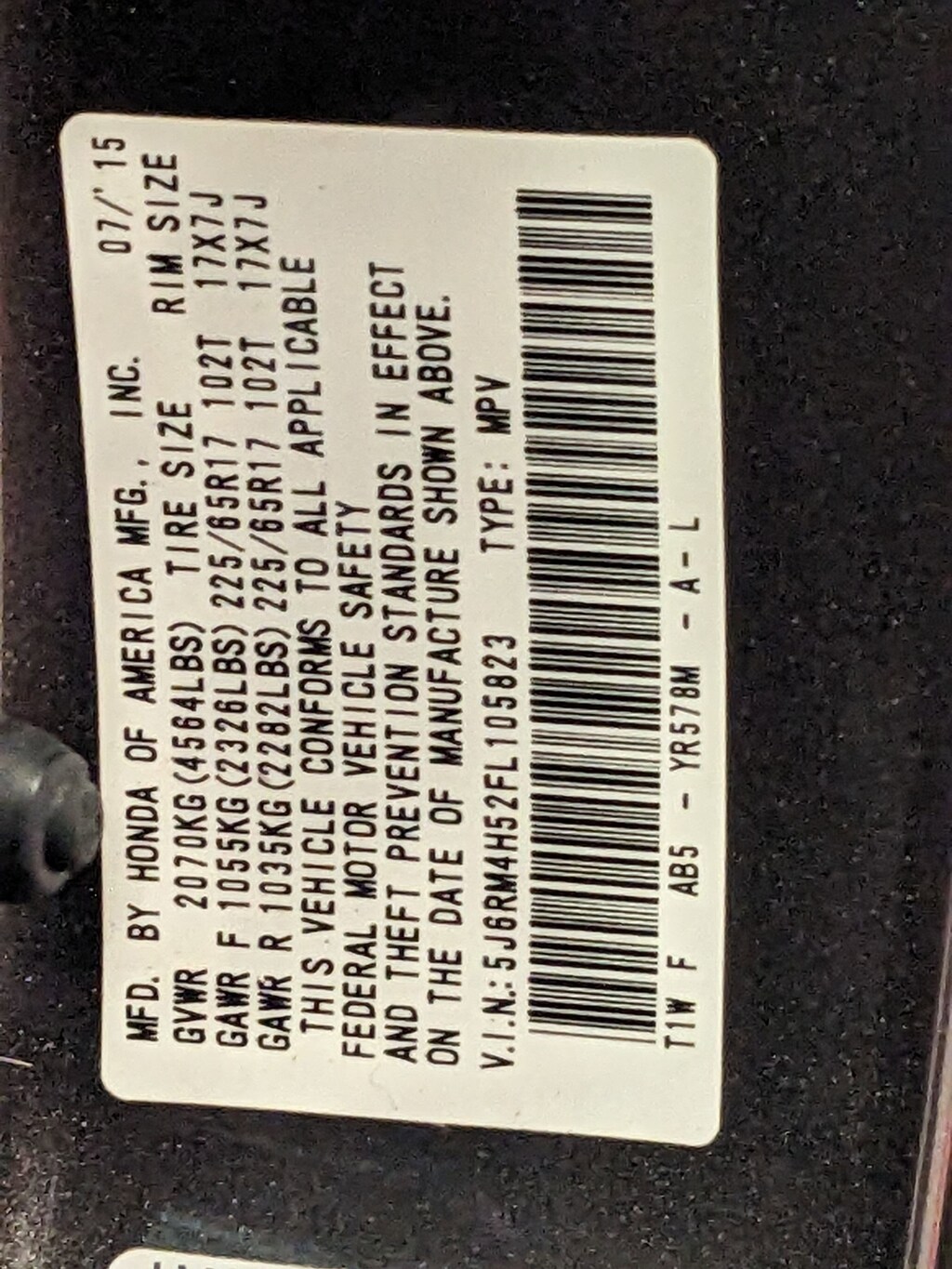 - Front tires: 225/65TR17.0