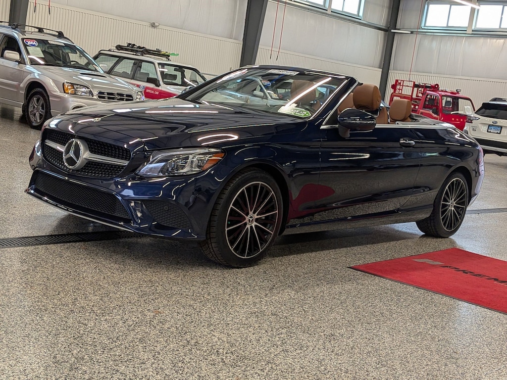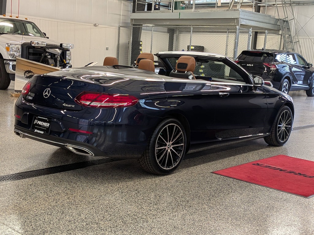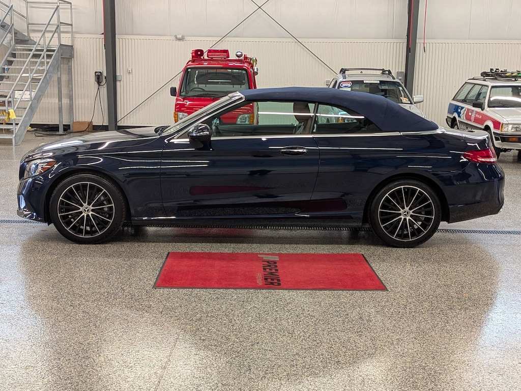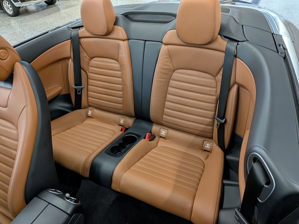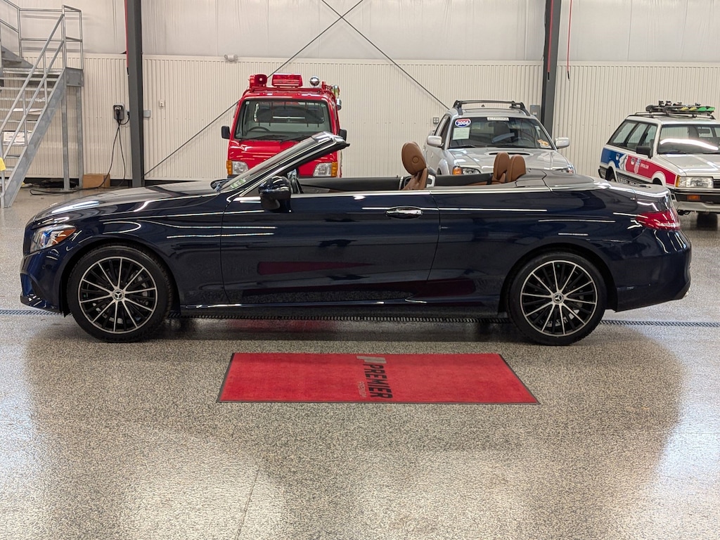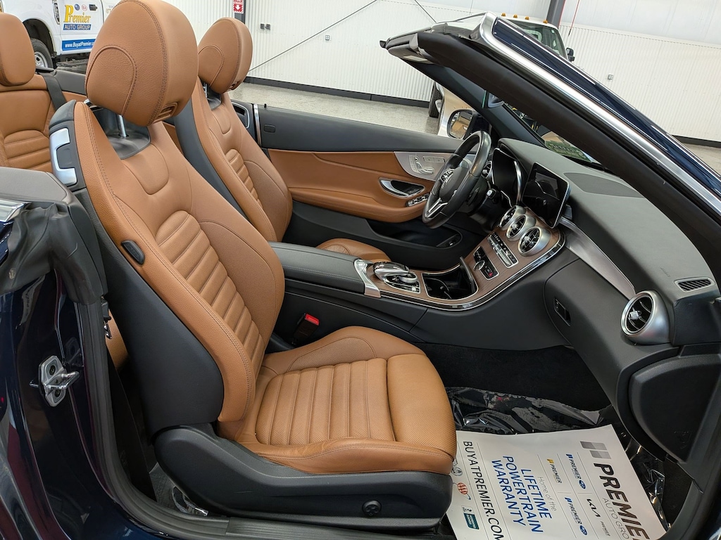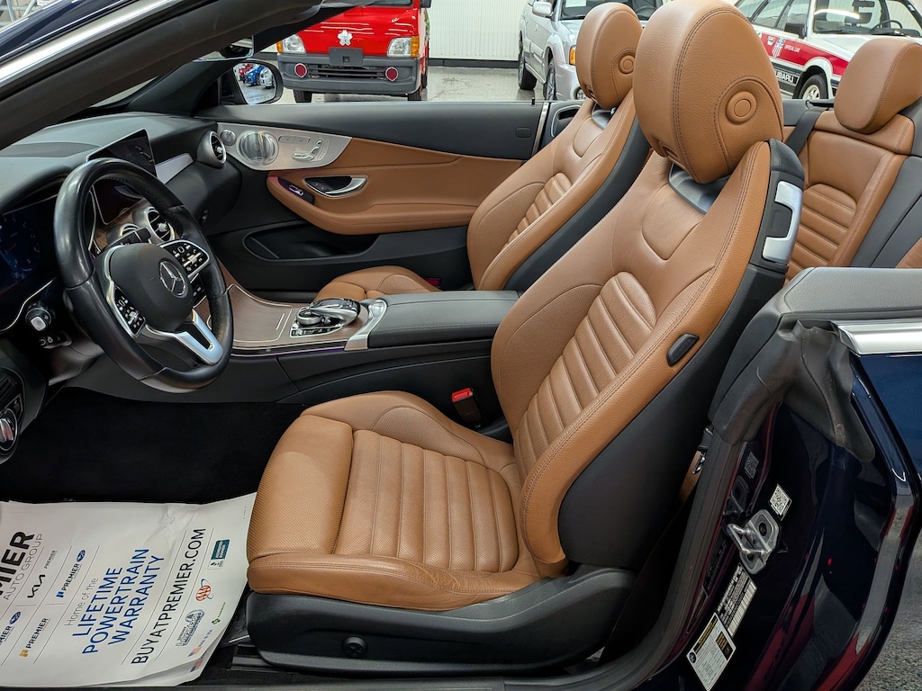 SERVICED BY OUR ASE TECHNICIANS. FOUR BRAND NEW TIRES INSTALLED. ACCIDENT FREE VEHICLE HISTORY REPORT, * LEATHER, APPLE CARPLAY AND ANDROID AUTO, C 300 4MATIC®, 2.0L I4 Turbocharged, 4MATIC®, Saddle Brown Leatherette, 10.25" High-Resolution Central Color Display, 13 Speakers, 4-Way Lumbar Support, 4-Wheel Disc Brakes, ABS brakes, Active Blind Spot Assist, Active Brake Assist w/Cross-Traffic Function, Active Distance Assist DISTRONIC® w/Steering Assist, Active Emergency Stop Assist, Active Lane Change Assist, Active Lane Keeping Assist, Active Speed Limit Assist, Active Steering Assist, Air Conditioning, Alloy wheels, AM/FM radio: SiriusXM, Android Auto®, Anti-whiplash front head restraints, Apple CarPlay®, Apple CarPlay®/Android Auto®, Auto tilt-away steering wheel, Auto-dimming door mirrors, Auto-dimming Rear-View mirror, Automatic temperature control, Black SoftTop, Brake assist, Bumpers: body-color, Burmester® Surround Sound System, Child-Seat-Sensing Airbag, Compass, Convertible roof lining, Convertible roof wind blocker, Delay-off headlights, Driver Assistance Package, Driver door bin, Driver vanity mirror, Dual front impact airbags, Dual front side impact airbags, Electronic Stability Control, Emergency communication system: Mercedes me connect, Evasive Steering Assist, Exterior Parking Camera Rear, Four wheel independent suspension, Front anti-roll bar, Front Bucket Seats, Front Center Armrest, Front dual zone A/C, Front reading lights, Fully automatic headlights, Garage door transmitter: HomeLink, Genuine wood console insert, Glass rear window, HD-Radio, Head restraints memory, Heated door mirrors, Heated front seats, Illuminated entry, Integrated roll-over protection, Knee airbag, Low tire pressure warning, MB-Tex Upholstery, Memory seat, Occupant sensing airbag, Outside temperature display, Overhead airbag, Overhead console, Panic alarm, Parking Assistance Package, PARKTRONIC w/Active Parking Assist, Passenger door bin, Passenger vanity mirror, Power adjustable front head restraints, Power Adjustable Passenger's Seat, Power convertible roof, Power door mirrors, Power driver seat, Power Heated Front Seats w/Driver Memory, Power passenger seat, Power steering, Power windows, Radio data system, Radio: Audio 20, Rain sensing wipers, Rear anti-roll bar, Rear Cross-Traffic Alert, Rear fog lights, Rear side impact airbag, Rear window defroster, Remote keyless entry, Route-Based Speed Adaptation, Security system, SiriusXM Radio, Smartphone Integration, Speed control, Speed-sensing steering, Split folding rear seat, Steering wheel memory, Steering wheel mounted audio controls, Surround View System, Tachometer, Telescoping steering wheel, Tilt steering wheel, Traction control, Trip computer, Turn signal indicator mirrors, Variably intermittent wipers, Weather band radio, Wheels: 18" Split 5-Spoke.