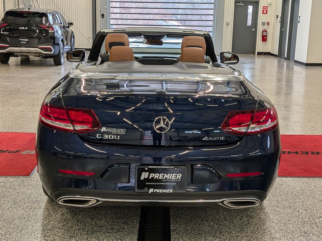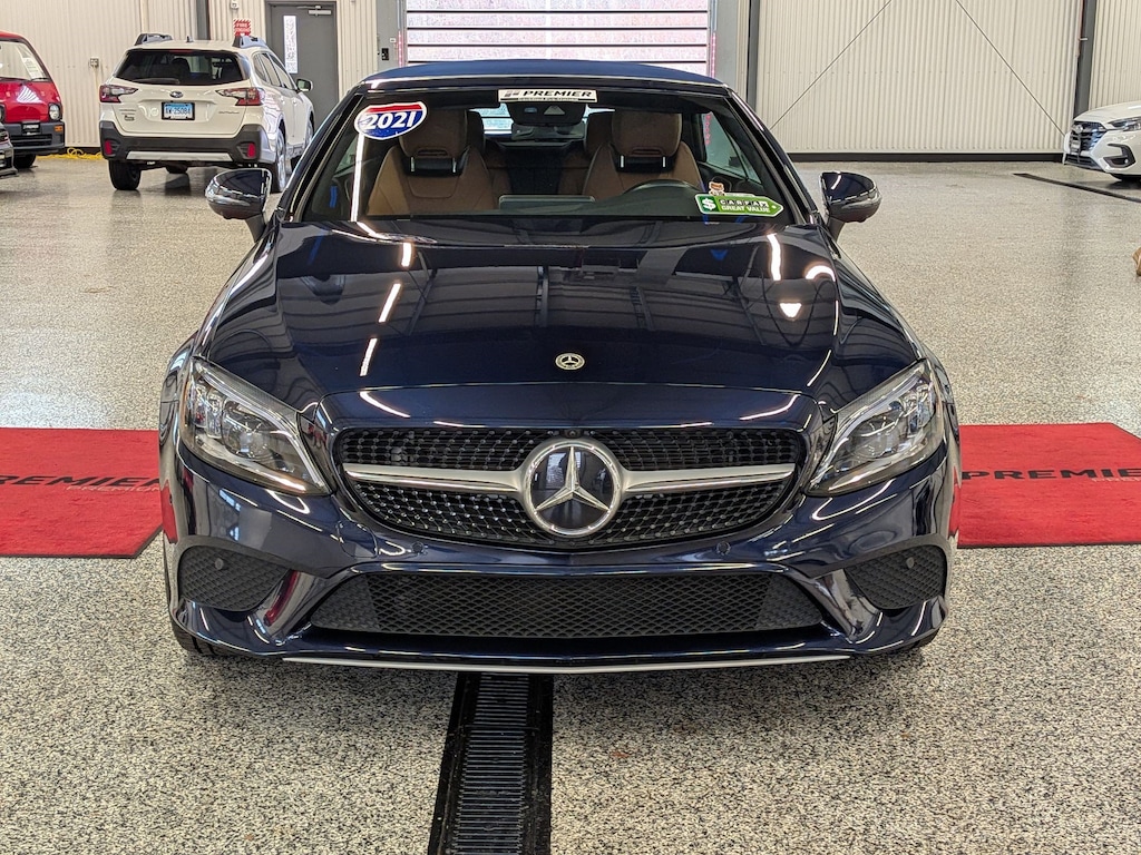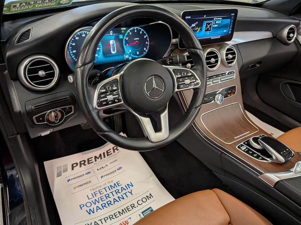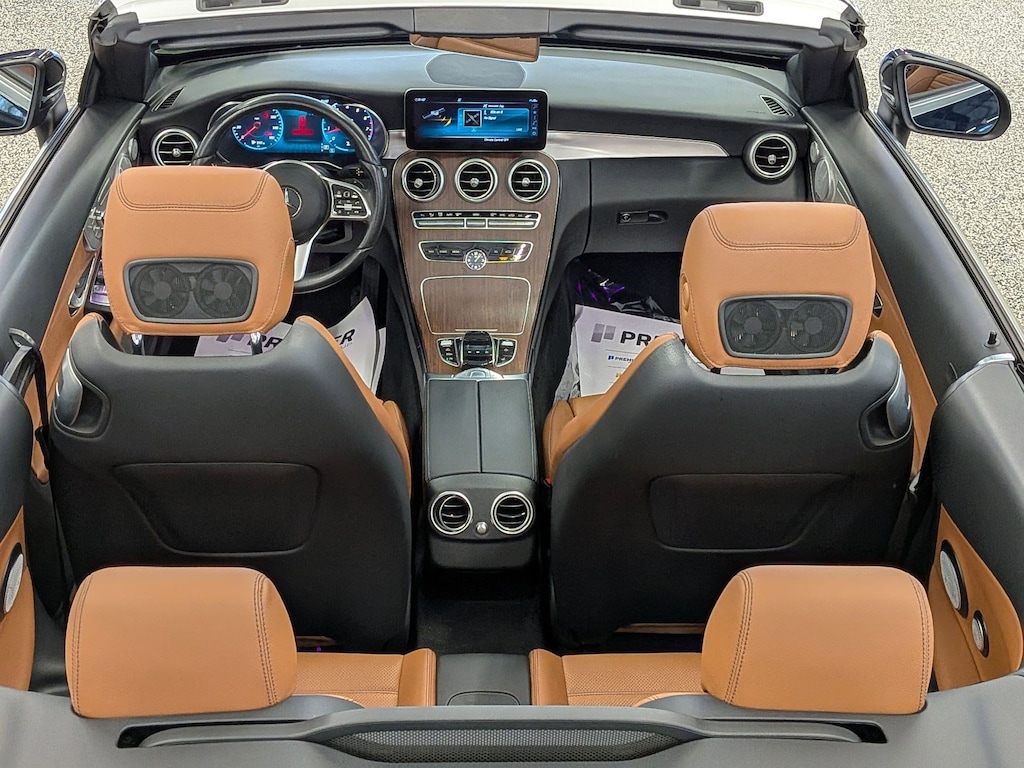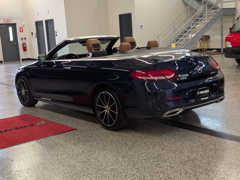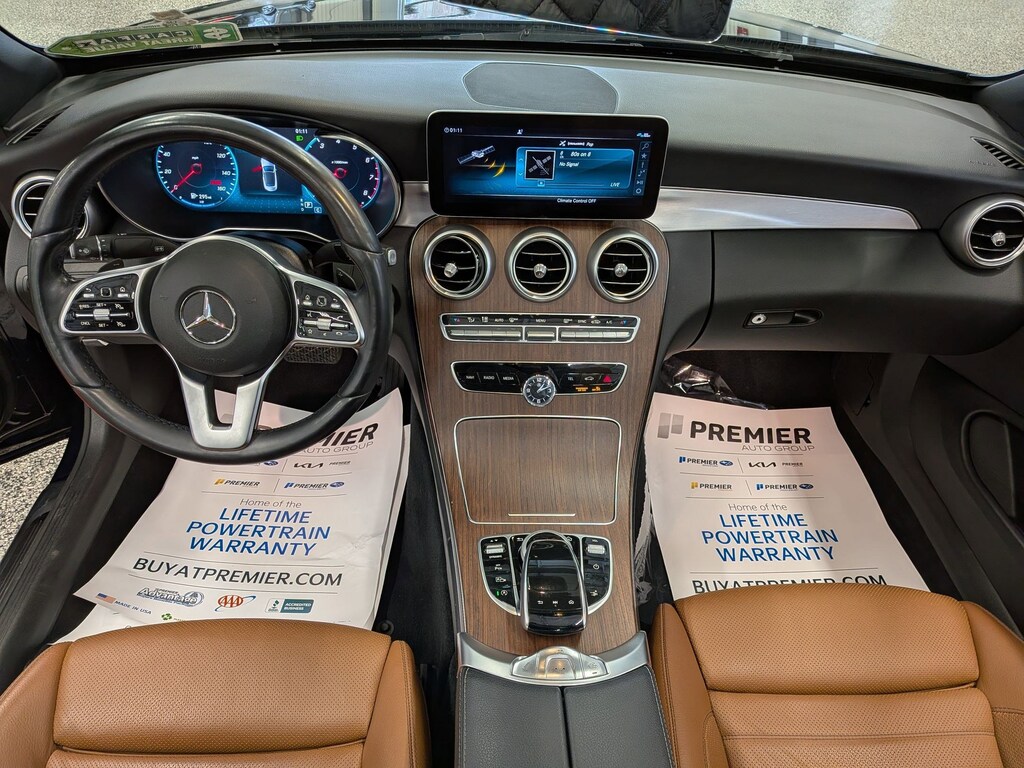 SERVICED BY OUR ASE TECHNICIANS. FOUR BRAND NEW TIRES INSTALLED. ACCIDENT FREE VEHICLE HISTORY REPORT, * LEATHER, APPLE CARPLAY AND ANDROID AUTO, C 300 4MATIC®, 2.0L I4 Turbocharged, 4MATIC®, Saddle Brown Leatherette, 10.25" High-Resolution Central Color Display, 13 Speakers, 4-Way Lumbar Support, 4-Wheel Disc Brakes, ABS brakes, Active Blind Spot Assist, Active Brake Assist w/Cross-Traffic Function, Active Distance Assist DISTRONIC® w/Steering Assist, Active Emergency Stop Assist, Active Lane Change Assist, Active Lane Keeping Assist, Active Speed Limit Assist, Active Steering Assist, Air Conditioning, Alloy wheels, AM/FM radio: SiriusXM, Android Auto®, Anti-whiplash front head restraints, Apple CarPlay®, Apple CarPlay®/Android Auto®, Auto tilt-away steering wheel, Auto-dimming door mirrors, Auto-dimming Rear-View mirror, Automatic temperature control, Black SoftTop, Brake assist, Bumpers: body-color, Burmester® Surround Sound System, Child-Seat-Sensing Airbag, Compass, Convertible roof lining, Convertible roof wind blocker, Delay-off headlights, Driver Assistance Package, Driver door bin, Driver vanity mirror, Dual front impact airbags, Dual front side impact airbags, Electronic Stability Control, Emergency communication system: Mercedes me connect, Evasive Steering Assist, Exterior Parking Camera Rear, Four wheel independent suspension, Front anti-roll bar, Front Bucket Seats, Front Center Armrest, Front dual zone A/C, Front reading lights, Fully automatic headlights, Garage door transmitter: HomeLink, Genuine wood console insert, Glass rear window, HD-Radio, Head restraints memory, Heated door mirrors, Heated front seats, Illuminated entry, Integrated roll-over protection, Knee airbag, Low tire pressure warning, MB-Tex Upholstery, Memory seat, Occupant sensing airbag, Outside temperature display, Overhead airbag, Overhead console, Panic alarm, Parking Assistance Package, PARKTRONIC w/Active Parking Assist, Passenger door bin, Passenger vanity mirror, Power adjustable front head restraints, Power Adjustable Passenger's Seat, Power convertible roof, Power door mirrors, Power driver seat, Power Heated Front Seats w/Driver Memory, Power passenger seat, Power steering, Power windows, Radio data system, Radio: Audio 20, Rain sensing wipers, Rear anti-roll bar, Rear Cross-Traffic Alert, Rear fog lights, Rear side impact airbag, Rear window defroster, Remote keyless entry, Route-Based Speed Adaptation, Security system, SiriusXM Radio, Smartphone Integration, Speed control, Speed-sensing steering, Split folding rear seat, Steering wheel memory, Steering wheel mounted audio controls, Surround View System, Tachometer, Telescoping steering wheel, Tilt steering wheel, Traction control, Trip computer, Turn signal indicator mirrors, Variably intermittent wipers, Weather band radio, Wheels: 18" Split 5-Spoke.