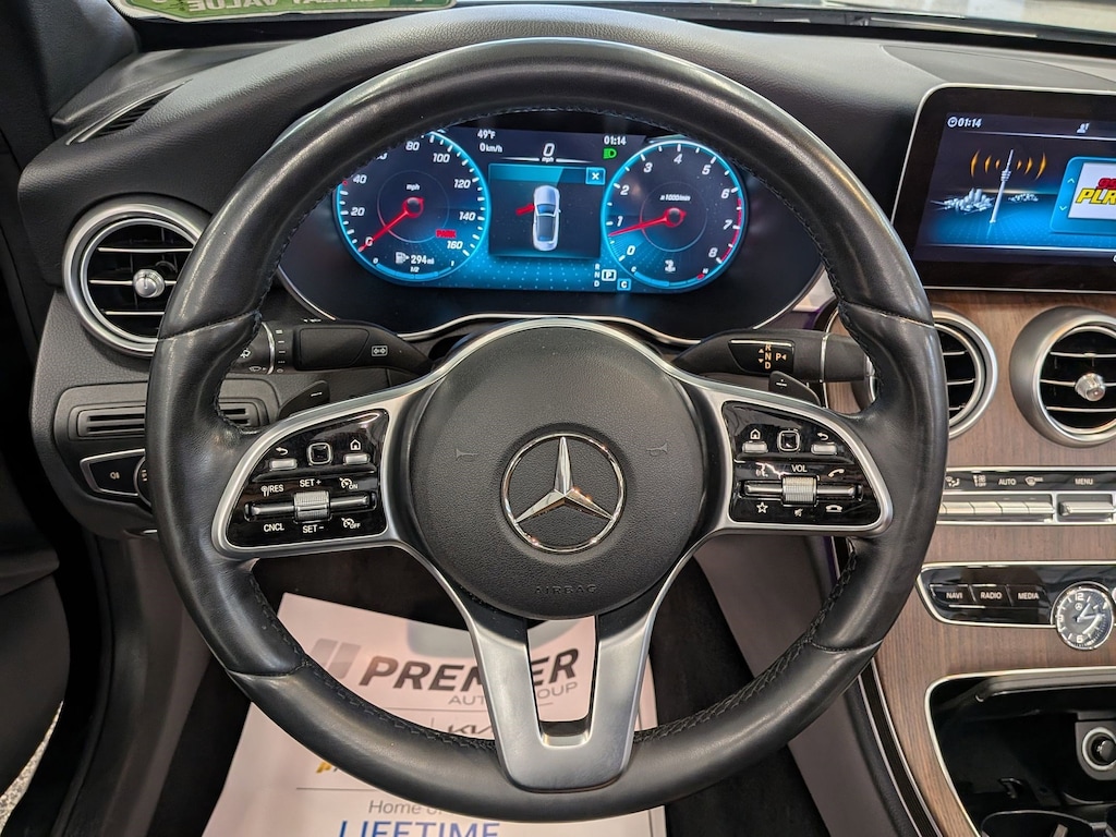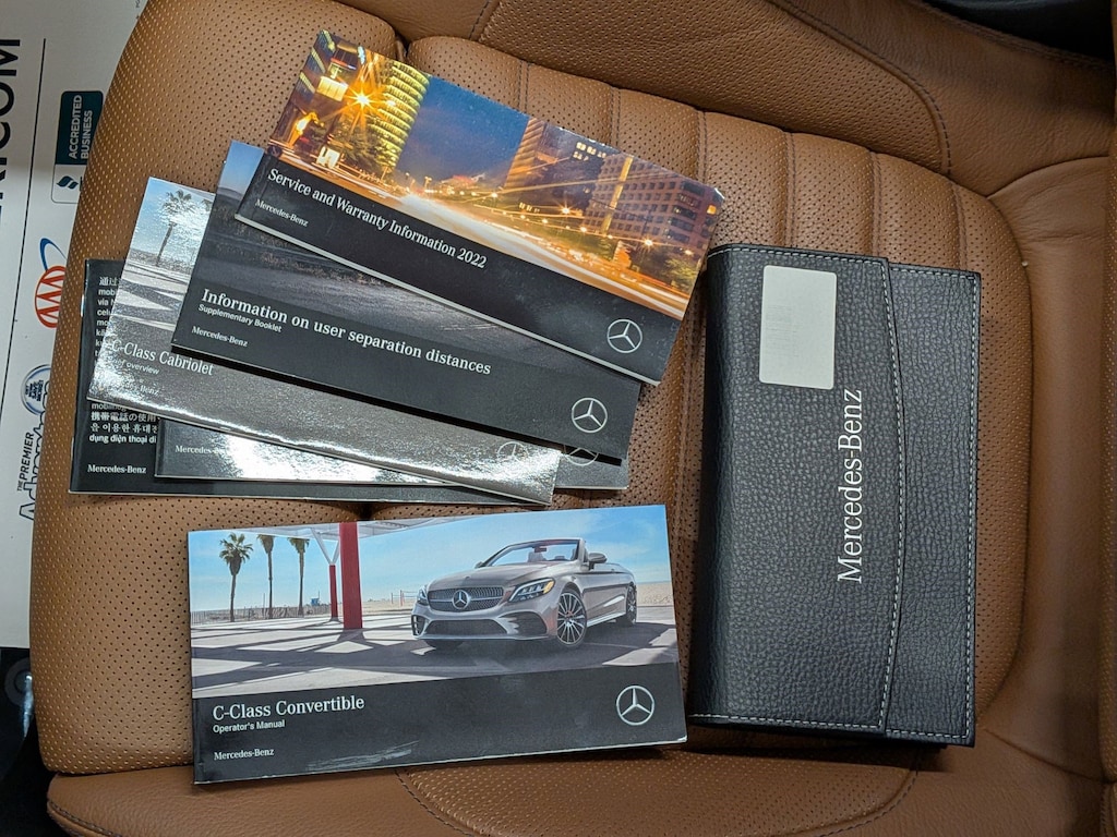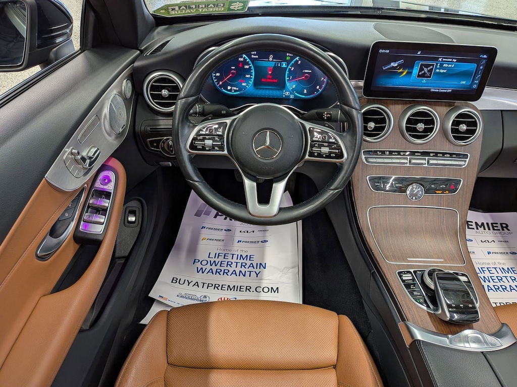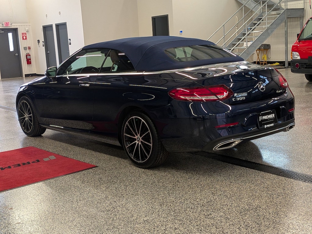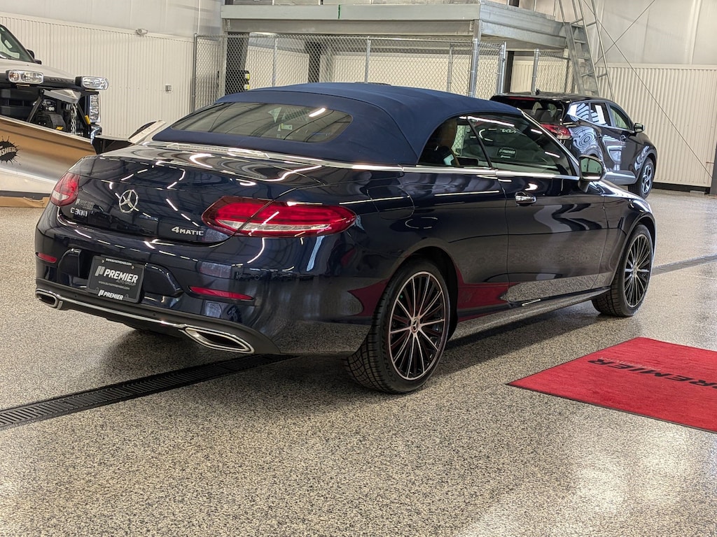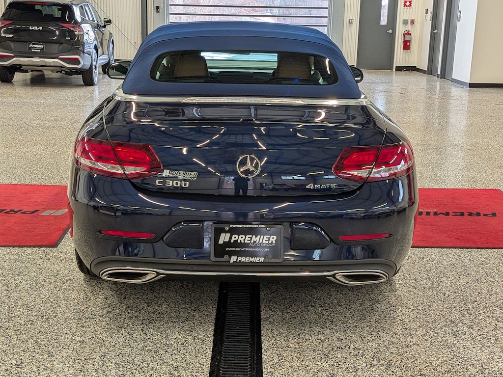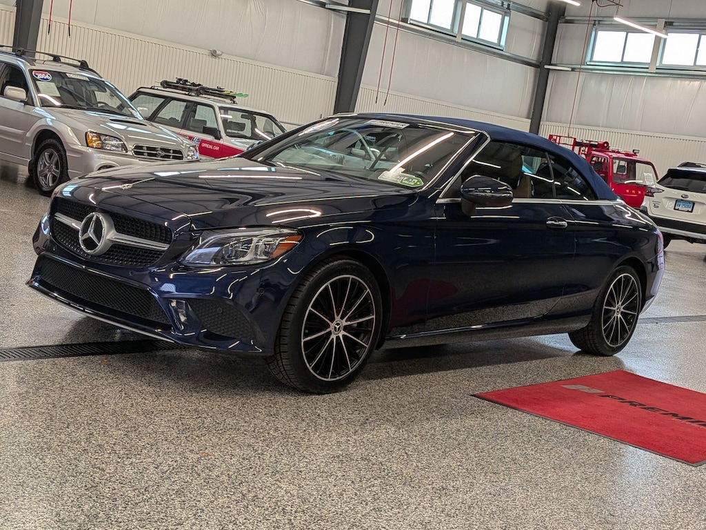 SERVICED BY OUR ASE TECHNICIANS. FOUR BRAND NEW TIRES INSTALLED. ACCIDENT FREE VEHICLE HISTORY REPORT, * LEATHER, APPLE CARPLAY AND ANDROID AUTO, C 300 4MATIC®, 2.0L I4 Turbocharged, 4MATIC®, Saddle Brown Leatherette, 10.25" High-Resolution Central Color Display, 13 Speakers, 4-Way Lumbar Support, 4-Wheel Disc Brakes, ABS brakes, Active Blind Spot Assist, Active Brake Assist w/Cross-Traffic Function, Active Distance Assist DISTRONIC® w/Steering Assist, Active Emergency Stop Assist, Active Lane Change Assist, Active Lane Keeping Assist, Active Speed Limit Assist, Active Steering Assist, Air Conditioning, Alloy wheels, AM/FM radio: SiriusXM, Android Auto®, Anti-whiplash front head restraints, Apple CarPlay®, Apple CarPlay®/Android Auto®, Auto tilt-away steering wheel, Auto-dimming door mirrors, Auto-dimming Rear-View mirror, Automatic temperature control, Black SoftTop, Brake assist, Bumpers: body-color, Burmester® Surround Sound System, Child-Seat-Sensing Airbag, Compass, Convertible roof lining, Convertible roof wind blocker, Delay-off headlights, Driver Assistance Package, Driver door bin, Driver vanity mirror, Dual front impact airbags, Dual front side impact airbags, Electronic Stability Control, Emergency communication system: Mercedes me connect, Evasive Steering Assist, Exterior Parking Camera Rear, Four wheel independent suspension, Front anti-roll bar, Front Bucket Seats, Front Center Armrest, Front dual zone A/C, Front reading lights, Fully automatic headlights, Garage door transmitter: HomeLink, Genuine wood console insert, Glass rear window, HD-Radio, Head restraints memory, Heated door mirrors, Heated front seats, Illuminated entry, Integrated roll-over protection, Knee airbag, Low tire pressure warning, MB-Tex Upholstery, Memory seat, Occupant sensing airbag, Outside temperature display, Overhead airbag, Overhead console, Panic alarm, Parking Assistance Package, PARKTRONIC w/Active Parking Assist, Passenger door bin, Passenger vanity mirror, Power adjustable front head restraints, Power Adjustable Passenger's Seat, Power convertible roof, Power door mirrors, Power driver seat, Power Heated Front Seats w/Driver Memory, Power passenger seat, Power steering, Power windows, Radio data system, Radio: Audio 20, Rain sensing wipers, Rear anti-roll bar, Rear Cross-Traffic Alert, Rear fog lights, Rear side impact airbag, Rear window defroster, Remote keyless entry, Route-Based Speed Adaptation, Security system, SiriusXM Radio, Smartphone Integration, Speed control, Speed-sensing steering, Split folding rear seat, Steering wheel memory, Steering wheel mounted audio controls, Surround View System, Tachometer, Telescoping steering wheel, Tilt steering wheel, Traction control, Trip computer, Turn signal indicator mirrors, Variably intermittent wipers, Weather band radio, Wheels: 18" Split 5-Spoke.