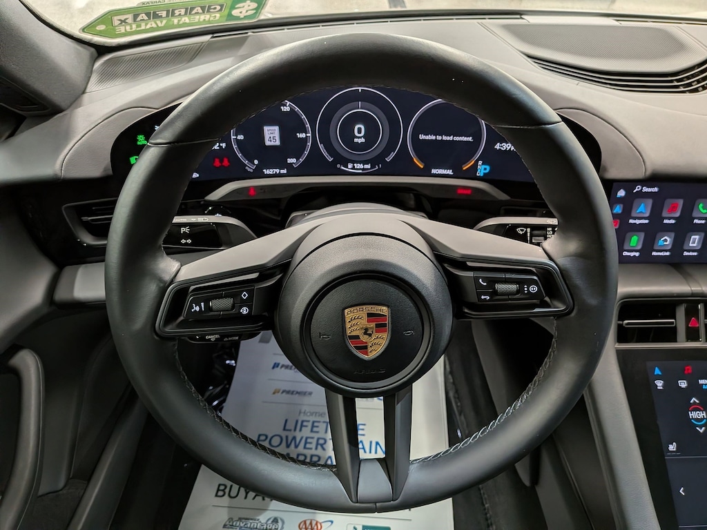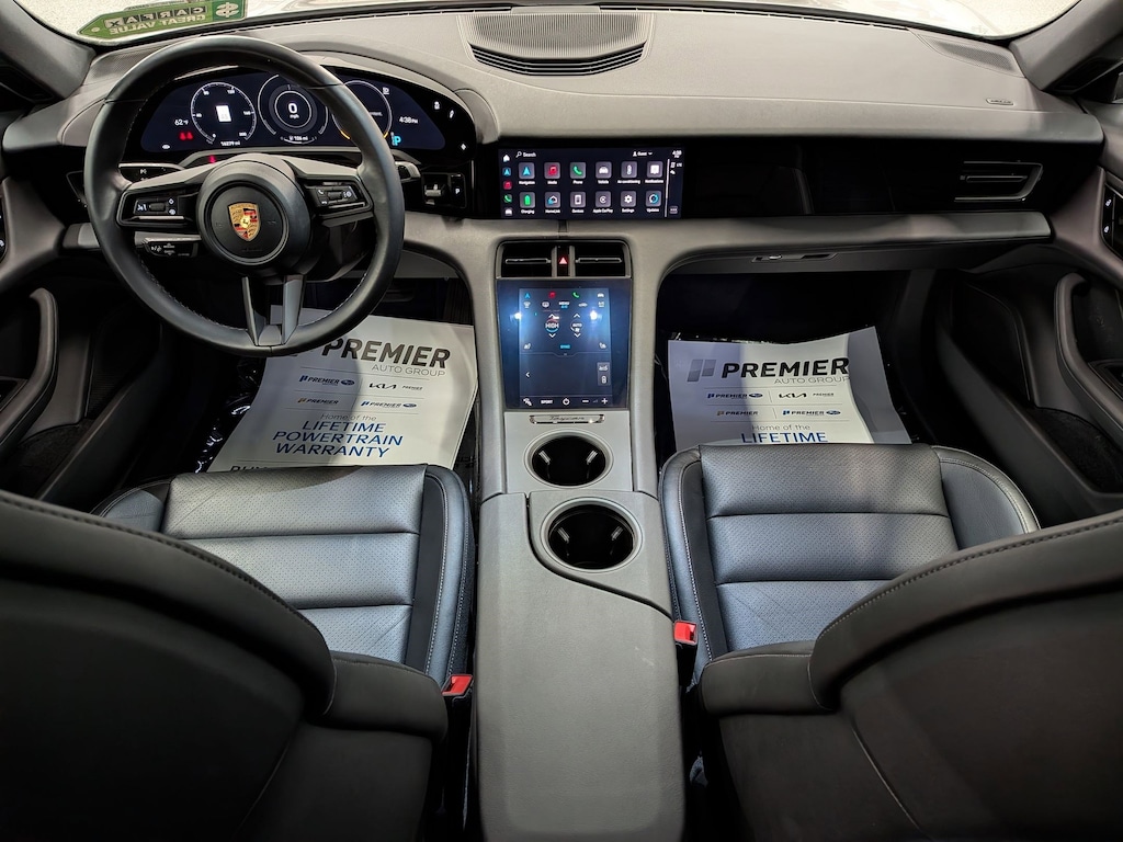 MSRP: $90,980, 20" WHEELS, FIXED PANORAMIC GLASS ROOF, HEATED LEATHER STEERING WHEEL, LANE CHANGE ASSIST, PORSCHE ELECTRIC SPORT SOUND, $10,000 IN FACTORY OPTIONS.!!! ACCIDENT FREE VEHICLE HISTORY REPORT, LOW MILES, 10 Speakers, 4-Wheel Disc Brakes, 8-Way Power Seats, ABS brakes, Air Conditioning, Alloy wheels, Apple CarPlay, Auto-dimming door mirrors, Auto-dimming Rear-View mirror, Automatic temperature control, Brake assist, Bumpers: body-color, Compass, Delay-off headlights, Driver door bin, Driver vanity mirror, Dual front impact airbags, Dual front side impact airbags, Electronic Stability Control, Exterior Parking Camera Rear, Fixed Panoramic Roof in Glass, Four wheel independent suspension, Front anti-roll bar, Front Bucket Seats, Front Center Armrest, Front dual zone A/C, Front reading lights, Fully automatic headlights, Garage door transmitter: HomeLink, Heated door mirrors, Heated front seats, Illuminated entry, Knee airbag, Leather steering wheel, Low tire pressure warning, Navigation system: Porsche Communication Management (PCM), Occupant sensing airbag, Outside temperature display, Overhead airbag, Overhead console, Panic alarm, Partial Leather Seat Trim, Passenger vanity mirror, Porsche Communication Management, Power door mirrors, Power driver seat, Power passenger seat, Power steering, Power windows, Radio data system, Rain sensing wipers, Rear anti-roll bar, Rear fog lights, Rear reading lights, Rear seat center armrest, Rear side impact airbag, Rear window defroster, Remote keyless entry, Security system, Speed control, Speed-sensing steering, Split folding rear seat, Spoiler, Sport steering wheel, Steering wheel mounted audio controls, Telescoping steering wheel, Tilt steering wheel, Traction control, Trip computer, Variably intermittent wipers, Wheels: 19" Taycan Aero.