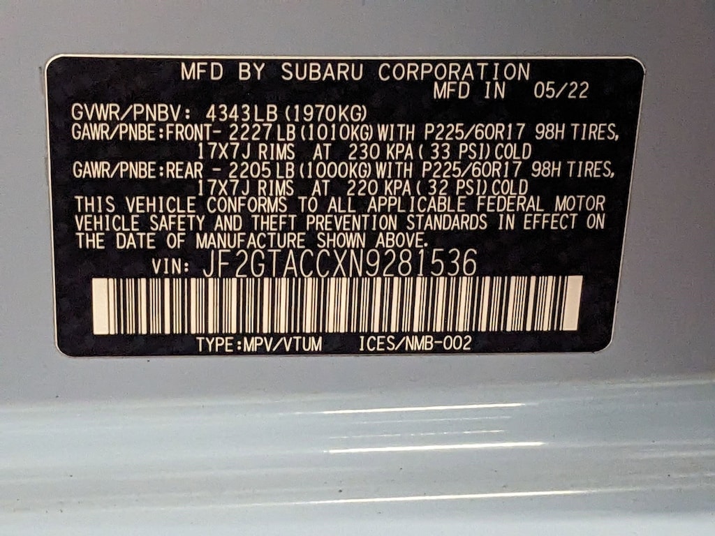 All vehicle specifications, prices and equipment are subject to change without notice. See above for information on purchase financing and lease program expiration dates. Prices and payments (including the amount down payment) do not include applicable, tax, title, license, dealer conveyance fee, documentation fees, registration fees, $175 Supply Chain Hardship fee as assessed to the retailer by Subaru of America, emissions testing charges, or other fees required by law or lending organizations. The estimated payments may not include upfront finance charges that must be paid to be eligible for the purchase financing program used to estimate the APR and payments. Listed Annual Percentage Rates are provided for the selected purchase financing or lease programs available on the current date. Program expiration dates reflect currently announced program end dates, but these programs are subject to change at any time.