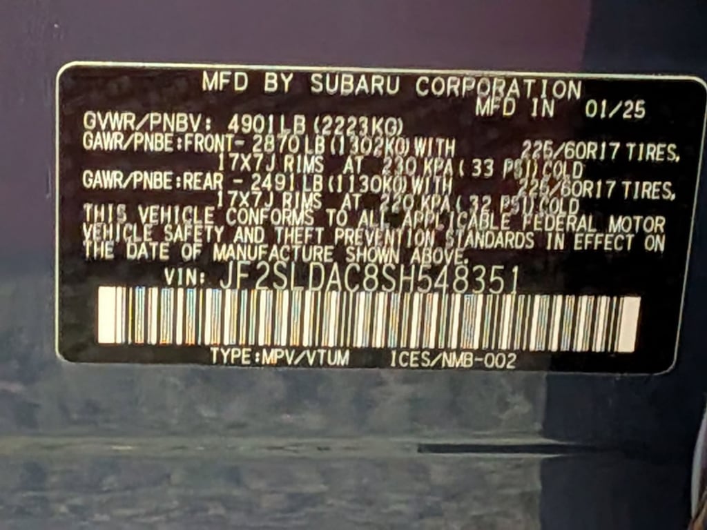 All vehicle specifications, prices and equipment are subject to change without notice. See above for information on purchase financing and lease program expiration dates. Prices and payments (including the amount down payment) do not include applicable, tax, title, license, dealer conveyance fee, documentation fees, registration fees, $175 Supply Chain Hardship fee as assessed to the retailer by Subaru of America, emissions testing charges, or other fees required by law or lending organizations. The estimated payments may not include upfront finance charges that must be paid to be eligible for the purchase financing program used to estimate the APR and payments. Listed Annual Percentage Rates are provided for the selected purchase financing or lease programs available on the current date. Program expiration dates reflect currently announced program end dates, but these programs are subject to change at any time.