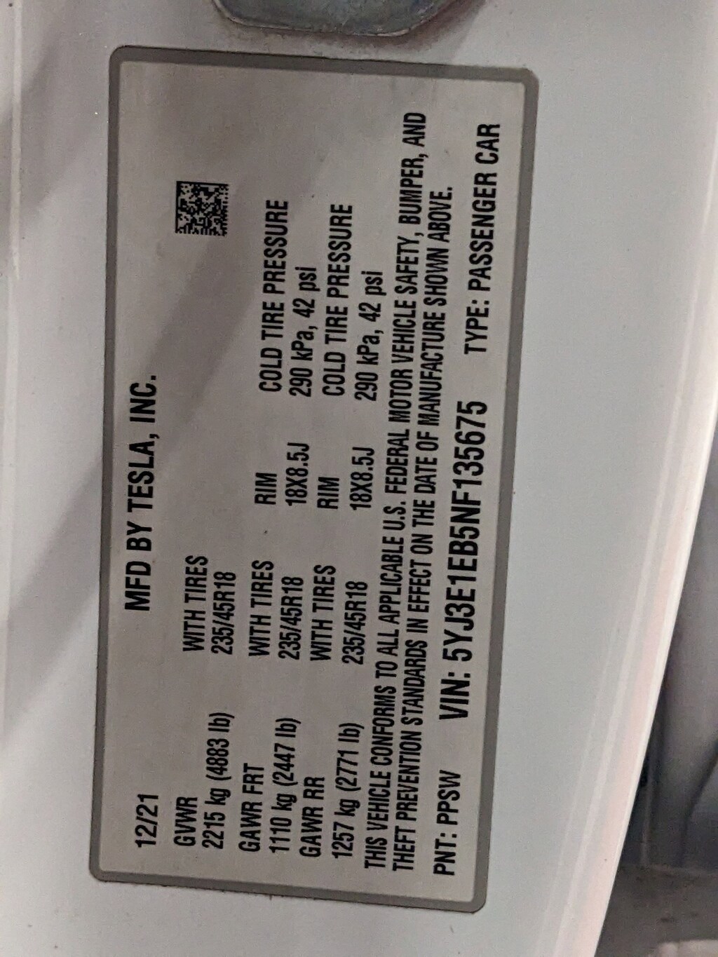 - 5YJ3E1EB5NF135675